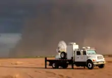 Since the inception of the project, both SMART-Rs have performed field research in various regions of the United States, including hurricane research, and haboob intensification studies.[4] Both SMART-Rs have sampled tornadic supercells across the plains, taking part in projects such as VORTEX-2 and VORTEX-SE. Given the SR platform consists of two individual radars, projects are often arranged in what is known as a dual-doppler setup, whereas two radars are located at different locations in varying orientations so as to maximize wind retrieval accuracy.[5]