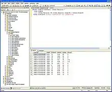 ![]() Earlier version of Microsoft SQL Server Management Studio showing a query, the results of the query, and the Object Explorer pane while connected to a SQL Server database engine instance. | |