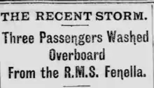 Headline in the Mona's Herald, Wednesday 11 January 1899, concerning the loss of three passengers from the RMS Fenella.