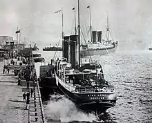 On 1 September 1873, during a voyage from Liverpool to Douglas, an explosion in her magazine injured several people, one seriously.[3] On 12 August 1878, she collided with Concordia, which was at anchor in the River Mersey. King Orry was undamaged and proceeded on her voyage to Douglas.[4] On 19 June 1884, the King Orry was required to go to the assistance of the Mona’s Isle which had suffered a mechanical failure.[5] Departing Liverpool at 13:05hrs with approximately 250 passengers embarked,[5] Mona’s Isle cleared the Victoria Channel and set a course bound for Douglas.[5] She passed the Tynwald, which was engaged in accompanying yachts racing in the Mersey, at 14:30hrs[5] which reported her to be making good speed. When approximately mid-channel the mechanical failure to her machinery occurred, forcing her Master, Capt. McQueen, to come to anchor and await the arrival of assistance.[5] As there was no wireless communication at that time, anxiety was caused in Douglas as the scheduled time of arrival of the Mona’s Isle passed, requiring the Isle of Man Steam Packet Company to contact their Liverpool office to ensure that she had departed on time.[5] This was duly confirmed and the King Orry, under the command of Capt. Gill, was coaled and despatched in order to locate the Mona’s Isle and give assistance.[5] At 23:15hrs the Mona’s Isle was located by the King Orry, which then took her under tow and proceeded to Douglas. Passage was slow, and it was not until 05:00hrs the following morning that the two vessels arrived in Douglas; where many people had stayed on the Victoria Pier all night, anxious to receive news.[5] Whilst out of commission, the King Orry replaced the Mona’s Isle on the Liverpool schedule, and in turn she was replaced on the Fleetwood schedule by the Fenella.[5]