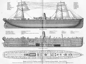 Built by Caird & Company of Greenock, Scotland, the Silesia, along with the SS Germania (I) (1863), SS Germania (II) (1870), SS Frisia (1872), SS Pomerania (1873), SS Hammonia (I) (1855), and SS Hammonia (II) (1866), was a Hammonia class ship. Some sources report her as being 340 feet (100 m) in length and 40 feet (12 m) from side to side[2] though other contemporary sources report her as somewhat larger.[3]