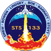 STS-133 (ISS assembly flight ULF5)[6] was the 133rd mission in NASA's Space Shuttle program; during the mission, Space Shuttle Discovery docked with the International Space Station. It was Discovery's 39th and final mission. The mission launched on February 24, 2011, and landed on March 9, 2011. The crew consisted of six American astronauts, all of whom had been on prior spaceflights, headed by Commander Steven Lindsey. The crew joined the long-duration six person crew of Expedition 26, who were already aboard the space station.[7] About a month before lift-off, one of the original crew members, Tim Kopra, was injured in a bicycle accident. He was replaced by Stephen Bowen.