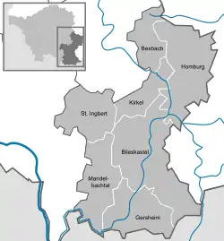 Saarpfalz (Saar-Palatinate) is a Kreis (district) in the south-east of the Saarland, Germany. Neighboring districts are (from west clockwise) Saarbrücken, Neunkirchen, Kusel, Kaiserslautern, Südwestpfalz, district-free Zweibrücken, and the French département Moselle.