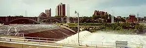 ![]() Saint Anthony Falls with the upper lock and dam, viewed from downstream | |