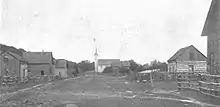 Saint Ignatius Church is a white-painted wooden structure covered with clapboard, with a tall wooden steeple.[5] Adjacent to the church is the Middle Village Cemetery, which contains rows of white crosses marking gravesites.[3]
