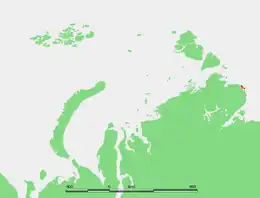 The Saint Peter Islands, also known as Saint Petra Islands or Petra Islands (Russian: Острова Петра, Ostrova Petra) are two islands covered with tundra vegetation, shingle and ice. These islands, as well as some other islands nearby (Ostrova Andreia, Ostrov Pavla) were originally named after Christian Apostles. The climate is Arctic and severe with frequent blizzards in the winter. The sea surrounding these Islands is covered with fast ice most of the year and is obstructed by pack ice even in the summer, so that these islands are merged with the mainland and animals can go across the ice.[1]