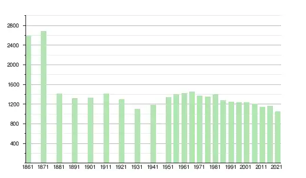 | Year | 1861 | 1871 | 1881 | 1891 | 1901 | 1911 | 1921 | 1931 | 1941 | 1951 | 1956 | 1961 | 1966 | 1971 | 1976 | 1981 | 1986 | 1991 | 1996 | 2001 | 2006 | 2011 | 2016 | 2021 |