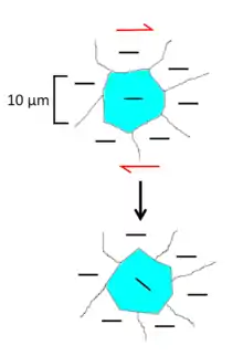 Grain-boundary migration is a dominant deformation mechanism at the top and the middle part of the salt glacier.[13] A subgrain is re-orientated to match the crystal lattice of the adjacent subgrain. Grain boundaries will move as the surrounding crystals are gradually consumed.[12]