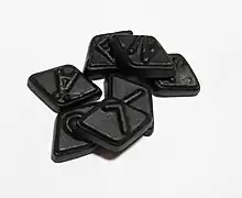 Salty liquorice, salmiak liquorice or salmiac liquorice, is a variety of liquorice flavoured with the ingredient "salmiak salt" (sal ammoniac; ammonium chloride), and is a common confection found in the Nordic countries, Benelux, and northern Germany.[1] Salmiak salt gives salty liquorice an astringent, salty taste,[2] akin to that of tannins—a characteristic of red wines, which adds bitterness and astringency to the flavour. Consuming salmiak liquorice can stimulate either a savoury or non-savoury palate and response.[1] Anise oil can also be an additional main ingredient in salty liquorice. Extra-salty liquorice is additionally coated with salmiak salt or salmiak powder, or sometimes table salt.