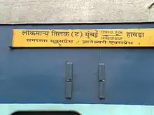 - 12152 Howrah–Lokmanya Tilak Terminus Samarsata Express leaves Howrah Junction every Friday & Saturday at 21:15 hrs IST and reaches Lokmanya Tilak Terminus at 07:30 hrs IST on the 3rd day.
