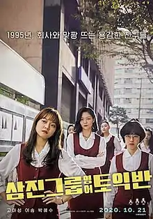Samjin Company English Class (Korean: 삼진그룹 영어토익반; RR: Samjingeurup Yeongeotoikban; lit. Samjin Group English TOEIC Class) is a 2020 South Korean comedy-drama film written and directed by Lee Jong-pil, starring Go Ah-sung, Esom and Park Hye-su.[2] It was released on October 21, 2020.[3][4]