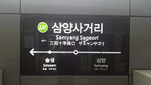 Wikimedia Commons has media related to Samyang Sageori Station.