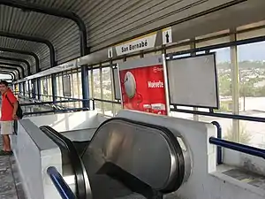 The San Bernabé Station (Spanish: Estación San Bernabé) is a station on Line 1 of the Monterrey Metro. It is located in the Solidaridad Avenue and Lic Julio Camelo intersection in Monterrey. This station is located in the Colon Avenue in the northeast side of the Monterrey Centre. The station was opened on 25 April 1991 as the western terminus of the inaugural section of Line 1, between San Bernabé and Exposición. On 11 June 2003, the line was extended west to Talleres.[1][2]