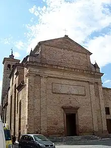 The church was erected in the 13th century. Some frescoes from this century remain; they appear to originate from Riminese artists. Among the frescoes moved here, a Madonna and child from the church of San Giacomo, Attributed to the Master of the Dormition of Terni.[1]