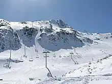 Nevertheless, the government's idea continued to be to create a resort that could compare with others in the country.[4] Therefore, in 1982, two new ski lifts were built, Peñanevares and Riopinos II, whose objective was to connect with future skiable areas. Thanks to these two new facilities, the idea of San Isidro as an outstanding resort was taking shape, but once again, problems with Asturias hindered its development. The problem was that the Riopinos II ski lift connected with areas that belonged to the Principality, which was not willing to develop these areas for the León resort (this area is currently occupied by the Fuentes de Invierno resort).[4] The other ski lift, Peñanevares, also remained in the background when the extension of the resort in the adjacent valley was not successful, even though it had ideal characteristics for its development. In 1983 the Requejines ski lift was extended.