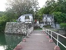 The former buildings of the penal island are considered "Patrimonio de Cultura," or cultural heritage sites.[8] The buildings include a historic dock that is still in use after the first dock was destroyed, a church, a medical building, temporary holding cells, a three-story main office, a large concrete disc used to hold a water tank, and water pumps. In addition, there are prison cells of varying security levels depending on the prisoners' crimes. The prison cells contain the typical graffiti of older Latin American prisons, such as religious phrases, pornographic images, signatures and drawings. There are also several water pumps and a cemetery under excavation on the island.[7]