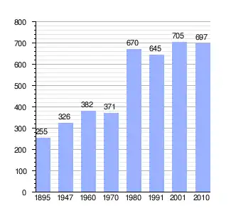 | Vertical bar chart demographic of San Martín, San Luis between 1895 and 2010 |
