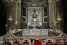 The Basilica of Saint Sylvester the First,[2] also known as (Italian: San Silvestro in Capite, Latin: Sancti Silvestri in Capite), is a Roman Catholic minor basilica and titular church in Rome dedicated to Pope Sylvester I (d. AD 335). It is located on the Piazza San Silvestro, at the corner of Via del Gambero and the Via della Mercede, and stands adjacent to the central Post Office.