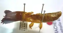 Sandgropers are wholly subterranean apterous insects of the family Cylindrachetidae that may grow up to 7 cm (3 in) long. Three genera are currently recognised: Cylindracheta, Cylindraustralia and Cylindroryctes. Like many subterranean animals, little is known about their habits and diet, but Western Australian farmers have blamed them for substantial crop losses.