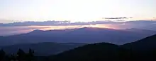 The Spanish Peaks are a pair of mountains, West Spanish Peak, 13,626 ft (4,153 m), and East Spanish Peak, 12,860 ft (3,920 m), located in southwestern Huerfano County, Colorado.[3] The Spanish Peaks were designated a National Natural Landmark in 1976 as one of the best known examples of igneous dikes.[4] The mountains can be seen from as far as 133 mi (214 km) to the north from Colorado Springs, 65 mi (105 km) to the south from Raton, New Mexico, and 85 mi (137 km) to the east from La Junta, Colorado.