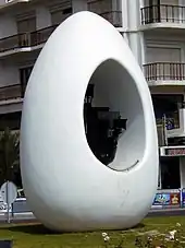 The Egg is a statue erected in the early 1990s to commemorate the local claim of having been the birthplace of Christopher Columbus (there is a similar claim that Hannibal was born in the region). The statue is in the shape of an egg, containing at its centre a model of his ship: the Santa Maria.