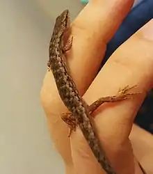 Saproscinus spectabilis known as the gully shadeskink is a small lizard found in Queensland and New South Wales, Australia.[3] The habitat is cool, shaded gullies where it feeds on small insects. It may be seen on sunny rocky outcrops within gullies. Ground cover and rocky cracks are required to avoid predation from birds such as the kookaburra and pied currawong.