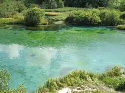 The Sava Dolinka is a headwater of the Sava River in northwestern Slovenia. The 45 kilometres (28 mi) long Sava Dolinka[1] starts as Nadiža Creek in the Planica Valley under Mount Zadnja Ponca in the Julian Alps, at an elevation of 1222 m, close to the Italian border. The stream goes underground soon after its source and breaks out again after 5 km at an elevation of 842 m in Zelenci, near Kranjska Gora. The Sava Dolinka flows through Kranjska Gora, Gozd Martuljek, Jesenice, between Bled and Breg, and past the town of Lesce. The first in a series of hydroelectric power plants on the river, the Moste Hydro Power Plant (22.5 MW), is located near Žirovnica. It merges with the second major headwater of the Sava, the Sava Bohinjka, at Radovljica. Tributaries of the Sava Dolinka include the Triglav Bistrica at Mojstrana and the Radovna, which flows through the Vintgar Gorge near Bled.
