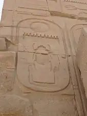 Carved relief of the cartouche representing Thutmose III on the wall of the Precinct of Amun-Re, Karnak