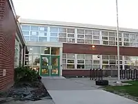 On January 1, 1954, The Collegiate and Township Boards merged into the new Scarborough Board of Education. Dr. King, the principal of Scarborough C.I. became the first Director of Education.[3] As the architecture of these new schools was simple, functional and unpretentious, the earlier models were sometimes subject to criticism as bearing too close a resemblance to long, low factory buildings. However, as school succeeded school, their style and appearance was progressively improved. In some of the more recent buildings marks of beauty and distinction have begun to emerge. Indeed, to the eyes of older Scarborough residents accustomed to the bare little brick schoolhouses of the rural period, the latest modern school buildings of gleaming glass, steel, and brick are most impressive temples of learning. To attractive well-lighted classrooms have been added new features: beautiful kindergarten classrooms with radiant heating in the floors, libraries, manual training and household science rooms, rooms for nurses and teachers, spacious dual purpose gymnasiums and auditoriums with stages, and modern equipment such as motion picture projectors, tape recorders and even television sets. Many children are also transported daily to school in school buses; which ends the era of the day of the long walk to school in wind and rain, snow, mud and dust conditions.[3]