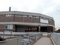Until 1973, the board offices was also located at Scarborough Municipal Offices at 2100 Eglinton Avenue near Birchmount Road (built after World War II now demolished and site of parking lot). The new SBE administrative offices, located at 2466 Eglinton Avenue East (northside of Eglinton and west of Midland Avenue) and designed by architect Harold Carter, were built in 1954 and administrative operations were relocated in 1973. The former building was declared redundant by 1986 and was replaced by Rainbow Village condos in 1990.[32]