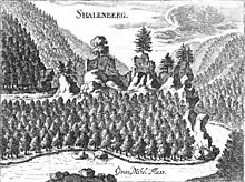 Schallenberg Castle in a 1674 engraving by Georg Matthäus Vischer