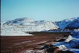 With a mean annual air temperature of -5.3 °C, Schefferville belongs to a zone with widespread permafrost occurrence and permafrost exists with a considerable thickness in the area. This resulted in difficulties when blasting in the open pit mine.