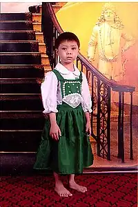 | Primary school students | Students: Kindergarten, 1st Standard, 2nd Standard, 3rd Standard, 4th Standard. | Top: white dress shirt Bottom: green pants Footwear: shoes or male Burmese sandals | Top: white blouse Bottom: green skirt with or without green pants (There are many variants with mixed designs) Footwear: shoes or female Burmese sandals |