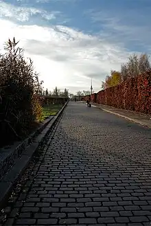A dirt road running northwards from the Berlin Customs Wall near Schönhausen Gate is documented since the 18th century. Then called Verlorener Weg[1] (a "Lost Road" disappearing in the fields), it led to the now defunct Marthashof, a deaconesses' home established in 1854. The road was paved about 1860 and renamed Schwedterstraße on 29 May 1862.