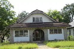 The Scipio A. Jones House is a historic house at 1872 South Cross Street in Little Rock, Arkansas. It is a 1+1⁄2-story masonry structure, finished in an elaborate interpretation of the Craftsman style with a variety of materials. It has a clipped-gable roof covered with red tile, with a skirt of roofing extending across the front above the first floor. The entrance is recessed under a stone-faced arch, which is flanked by stuccoed bays with bands of three sash windows. The gable above also has a three-sash window group. The house was built about 1928 for Scipio Jones, one of Arkansas' most prominent African-American lawyers and politicians of the period.[2]