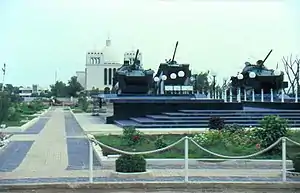 The battle was commemorated by a memorial of three tanks in War Memory Square near the Massawa city centre on Tualud Island by the entrance to the causeway to the mainland.[5][6] In 2004 on the fourteenth anniversary of the battle, Eritrea issued a set of two stamps and a three-stamp minisheet honoring the "Liberation of Massawa". Pictured on the 40c was the tank memorial with fountain, on the 50c was a speedboat (gunboat) with soldiers.[7]
