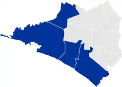 Between 1996 and 2005, the district had the same composition as at present, with the exception that it also covered Ixtlahuacán, which was transferred to the First District in 2005.[2]