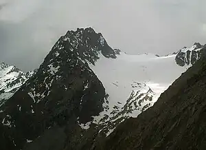 ![]() West ridge of the Seekogel from the Löcherferner (glacier). | |