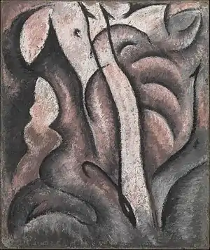 It is pastel on paperboard and considered part of the modernist movement.