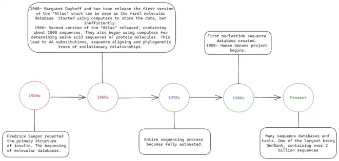 Timeline for the creation of sequence databases.