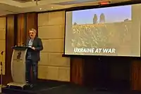 As a military journalist, photographer and writer, he has been covering the war in eastern Ukraine since 2014. He made a series of reports from Donbass as a correspondent for the Los Angeles Times. Sergei Loiko became the only foreign correspondent to visit the Donetsk airport besieged by Russian militants. At the end of October 2014, he spent four days there among the Ukrainian military and volunteers from the Right Sector, which resulted in an article with a gallery of his own photos on the front page of the Los Angeles Times.[4][5]