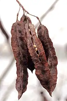 ![]() Sesbania punicea fruit or dehiscing seed pods |