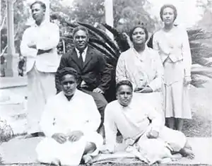 In 1912, George G. Stewart and his wife Grace reestablished the mission.[14] Stewart, who arrived early in 1912, reported that Adventist work was "practically at a standstill."[38] He and the Ethelbert Thorpe family changed the emphasis of the mission from education to evangelism.[39] The church was now better organized for work in the Pacific, with bases in New Zealand and Australia.[14] Stewart rebuilt the Falaloa school, which had been badly damaged by a hurricane, and started revival meetings in an effort to improve standards of worship.[36] The missionaries used the Tongan language, and their school at Nukuʻalofa under Maggie Ferguson attracted Tongan pupils eager to obtain education.[14] By June 1915 the SDA Church in Tonga had fourteen Tongan members.[39] In 1917 the mission home at Faleloa was expanded to provide accommodation for female pupils at the Faleloa school, which by then had a total of about forty pupils.[40] By 1918 the school had sixty pupils.[41]