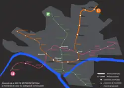 The total planned Seville Metro network is of four lines, for which no construction has taken place since the Spanish economic crisis . The next line to be built is the north-south Line 3, due to start in 2022.[10]