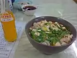 Vermicelli in lamb's blood soup粉湯羊血粉汤羊血fěn tāng yáng xuéA soup composed of ingredients such as congealed lamb's blood, paomo and other condiments. It is eaten with vermicelli and coriander.