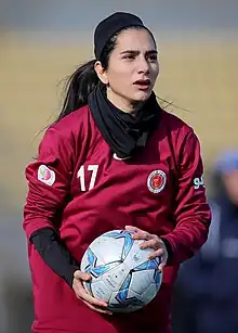 Shahnaz Jafarizadeh (Persian: شهناز جعفریزاده; born 16 March 1994 in Qom)[3] is an Iranian footballer who plays as a defender for Kowsar Women Football League club Bam Khatoon and the senior Iran women's national team.[4]