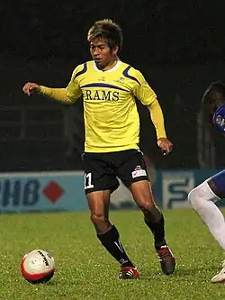 ![]() Shamsurin Abdul Rahman in action for Woodlands Wellington in a S.League against Courts Young Lions at Woodlands Stadium on 15 June 2012. | |||