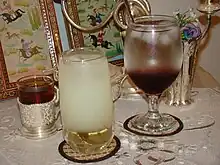 Cherbet (Arabic: شربات), also known as or charbet mazhar, is a traditional Algerian drink. In Algerian weddings, the bride drinks a large quantity of this traditional beverage and then offers it to her female guests after the hammam ritual, along with brioche pastries called kâak bouchkara.[43][44][45]