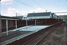 The station received a new frontage in 1908 and was further improved between 1939 and 1940.[4] The station took on great importance when the line through the Pennines, known as the Woodhead Route after the long Woodhead Tunnel on it, was electrified for freight purposes after World War II.