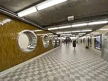 The station on the Sheppard line was designed by architectural firm NORR Limited. The construction of the Sheppard line included the integration of the bus terminal at street level into the fare-paid zone.